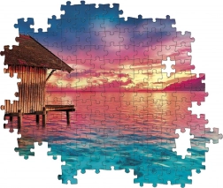 Dompel je onder in het meditatieve ritme van puzzelen met CLEMENTONI Peace – Living the Present. Diepe kleuren, zorgvuldige druk en perfect passende stukjes zorgen voor een prettige ervaring en een prachtig beeld van een hutje op palen boven kalm water bij zonsondergang.