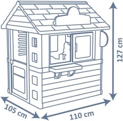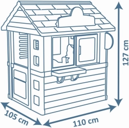 Het huis is uitgerust met stevige en stabiele dubbele kunststof wanden die bestand zijn tegen slecht weer en sterke wind. Afmetingen 98 x 110 x 127 cm met een totale hoogte van 127 cm maken comfortabel spelen mogelijk. Het speelgoed voldoet aan de hoogste veiligheidsnormen.