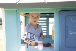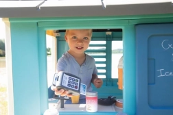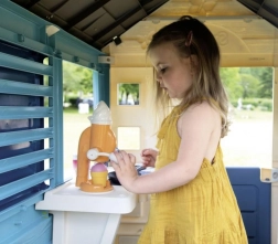 Het huisje bevat 18 verschillende plastic accessoires zoals servies en speelgoedeten, die de verbeelding en creativiteit van het kind bevorderen.