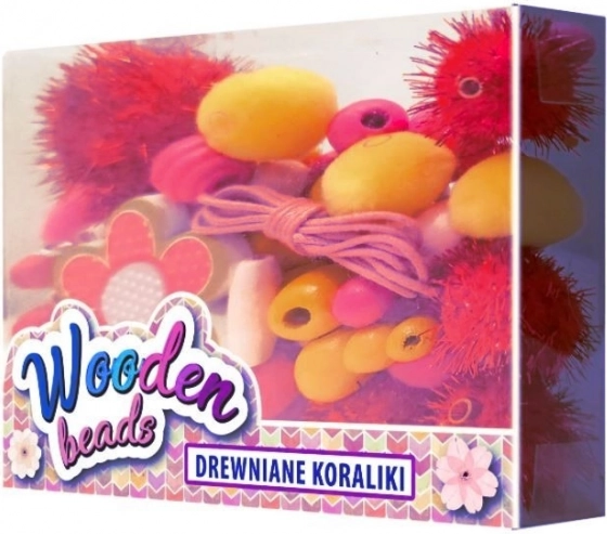 Ontdek het plezier van creëren met deze creatieve set houten kralen in roze tinten. Maak je eigen armbanden en kettingen – de verpakking bevat alles wat je nodig hebt, inclusief houten kralen, pompons, houten hangers in de vorm van bloemen en een gewaxt koord. Ideaal voor kinderen vanaf 4 jaar en beginnende makers.