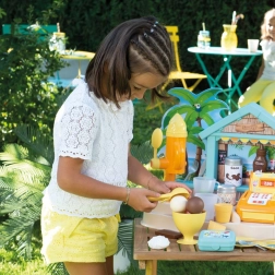 De uitgebreide set met 38 accessoires bevat een ijsmaker, hoorntjes en ijsbollen, een ijslepel, een fruitspies, toppings, servies, bestek en een kassa. Dankzij het compacte formaat is de kraam perfect voor in de tuin, het park en op het strand – ideaal voor jonge gastheren en gastvrouwen van zomerse feestjes.