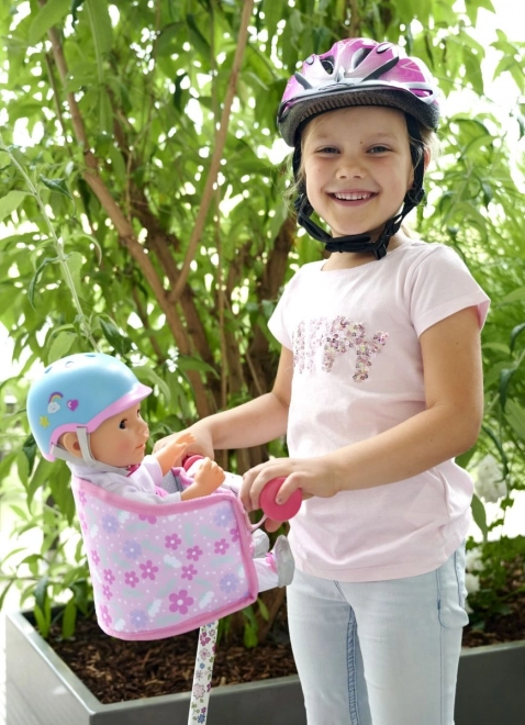 Geef kinderen een nog realistischer spelervaring tijdens ritjes buiten. Het textiele fietszitje voor poppen NEW BORN BABY met een subtiel bloemenpatroon is ontworpen voor veilig en comfortabel vervoer van een pop aan het fietsstuur of de step. De geïntegreerde veiligheidsriem met eenvoudige sluiting houdt de pop zeker op zijn plek, terwijl de zachte voering schokken dempt.