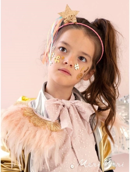 Ontdek de magie met de Hoofdband Vallende Ster. Deze elastische hoofdband is versierd met een glinsterende ster aangevuld met levendige linten. Dankzij het ontwerp wordt het je favoriete accessoire voor elke gelegenheid. Productkenmerken:
