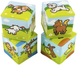 Elk blok heeft opvallende kleuren en leuke diermotieven die helpen bij het ontwikkelen van vorm- en kleurherkenning, oog-handcoördinatie en de eerste woordenschat. De praktische verpakking met 4 stuks is ideaal voor thuis en op reis.