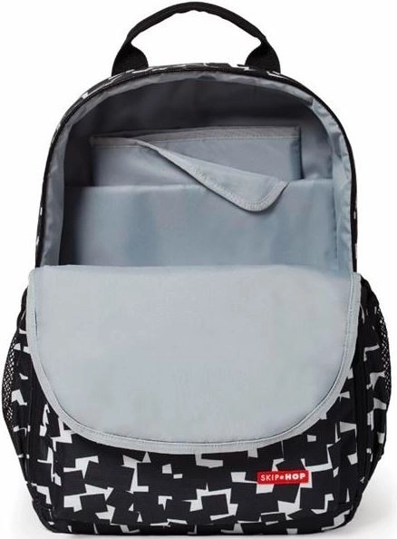 De Skip Hop Duo Signature rugzak is geïnspireerd op de onmisbare luiertas voor moderne ouders. Deze rugzak biedt alle functies die een klassieke luiertas heeft. Hij beschikt over negen speciale vakken voor organisatie en overzicht, een praktisch bovenhandvat voor eenvoudig dragen en een veilig vak voor de telefoon. Speciale haken maken het mogelijk de rugzak aan de kinderwagen te bevestigen, waardoor je handen vrij zijn, wat onbetaalbaar is bij de zorg voor een kind.