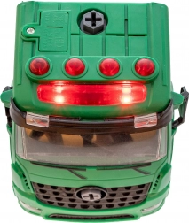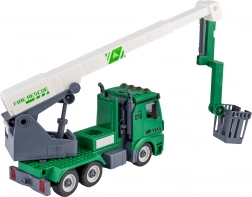 Handige bouwset en speelgoed in één: groen stadsvoertuig met uitschuifbare mand voor reddingsacties biedt de mogelijkheid tot schroeven en opnieuw monteren, realistische licht- en geluidseffecten en mechanische frictieaandrijving. Compatibel met populaire bouwsteentjes voor nog creatiever spel.