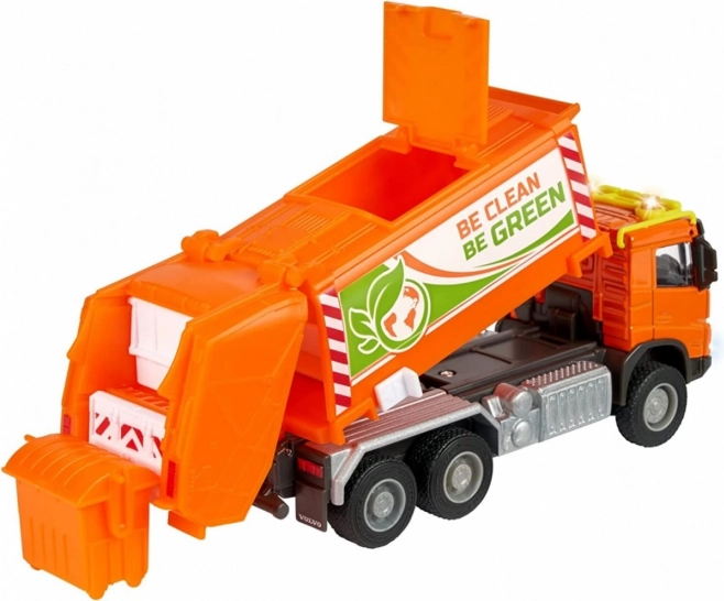Het model op schaal 1:43 heeft een werkende hefbak, te openen klep en kiepfunctie voor het gemakkelijk legen van afval. Rubberen banden met profiel kunnen verschillende ondergronden aan en 2 geluidseffecten samen met de koplampen en mistlampen zorgen voor extra authenticiteit. 2× AAA (R03) batterijen zijn inbegrepen, zodat het speelplezier meteen kan beginnen.