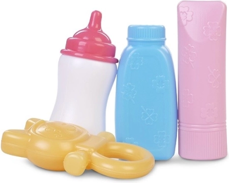 In de verpakking vind je doordachte accessoires met reliëf: een fles voor het voeden, een bijtring om te troosten en een schattig knuffeltje. Dit alles is overzichtelijk verpakt in een geschenkdoos met venster, waardoor de pop een geweldig cadeau is.