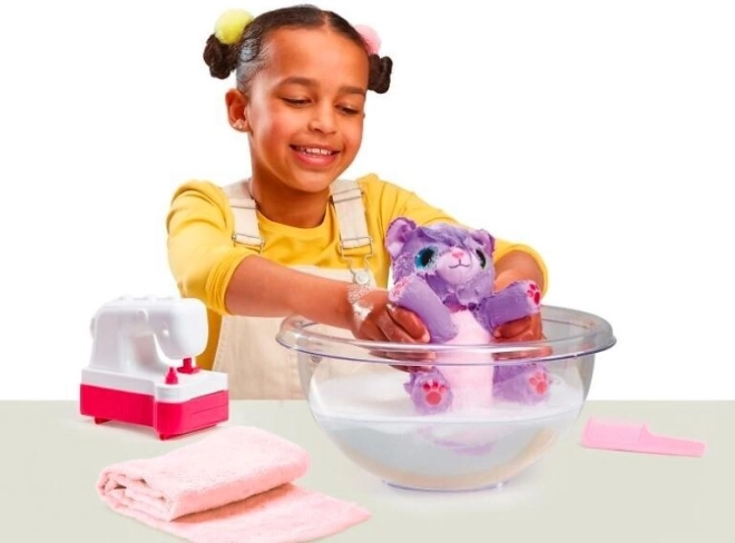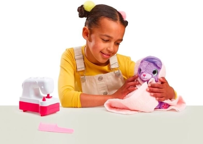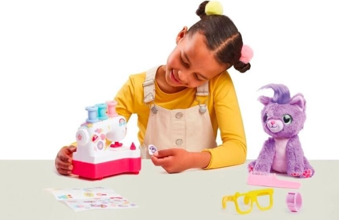 Het pluchen huisdiertje verschijnt in het begin als een verdrietig, zacht bolletje. Na een bad, kammen en verzorging ontdek je of je een katje of een hondje hebt. Neem daarna de naaimachine en gebruik een van de drie spoelen om prachtige outfits voor je huisdiertje te maken. Kies het boven- en onderstuk en maak de look af met een haarband of pet.