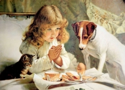 Een gedetailleerd motief met een meisje en een hond van 30 × 40 cm dat na voltooiing prachtig schittert en in elke interieurlijst tot zijn recht komt.