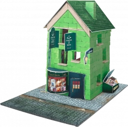 De set is ontworpen met het oog op de natuur: bevat tot 95% natuurlijke materialen en minder kunststof onderdelen. Werk van de fundering tot aan de stijlvolle gevel, voeg mos, steentjes en een uithangbord toe en geef je vitrine op de plank een uniek karakter. Combineert uitstekend met andere sets uit de BRICK TRICK HARRY POTTER-serie om de hele Wegisweg en de omgeving van Zweinstein te creëren.