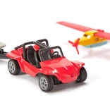 Deze set is ideaal voor jonge piloten en autoliefhebbers. De rode auto met metalen carrosserie en sportieve rubberen banden biedt realistische details die creatief spel stimuleren. Het vliegtuig heeft opvouwbare vleugels en levendige kleuren die de verbeelding prikkelen.
