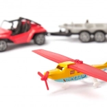De verpakking bevat een zilverkleurige aanhanger met een speciale houder voor vliegtuigen, waardoor eenvoudig en veilig transport mogelijk is. Elk detail is zorgvuldig ontworpen voor maximaal plezier en avontuur.