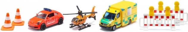 Deze hoogwaardige SIKU cadeauset brengt actie en spanning naar de kinderkamer. De modellen van reddingsvoertuigen in een formaat geschikt voor kleine handen zijn gemaakt van metaal met kunststof details, waardoor ze intensief spelen aankunnen. Realistische elementen, zoals openende deuren van de ambulance, een draaibare rotor van de helikopter en opvallende waarschuwingsprints, stimuleren de verbeelding en ontwikkelen de motoriek.