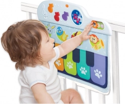 Het pianootje voor het ledikantframe is ontworpen om veilig en zacht te zijn en produceert aangename geluiden die de aandacht van het kind trekken. Het kind kan in het ledikant zowel zittend als liggend spelen door simpelweg de gekleurde nootjes met de voetjes in te drukken. Deze speelgoedpiano biedt drie speelmodi, waarmee je kunt kiezen tussen pianoklank en drie andere instrumenten: gitaar, harp of trompet.