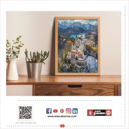 Leg het magische zicht op kasteel Neuschwanstein vanuit de lucht met deze puzzel van 1000 stukjes van Educa. In de verpakking zit gratis FIX PUZZLE®-lijm, die helpt je voltooide kunstwerk in perfecte staat te houden.