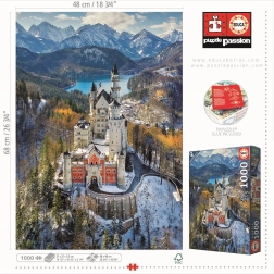 Deze puzzel biedt een adembenemend uitzicht op kasteel Neuschwanstein vanuit de lucht, wat niet alleen puzzelliefhebbers, maar ook bewonderaars van architectuur en romantiek zal bekoren. Met 1000 stukjes biedt hij een uitdaging die je urenlang op een leuke manier bezighoudt.
