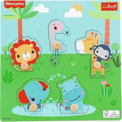 Kwalitatieve houten inlegpuzzel van FISHER-PRICE met 5 stukken en praktische handvatten, bevordert de fijne motoriek, vormherkenning en oog-handcoördinatie. Dankzij de zwart-witte hint op het bord kunnen kinderen elk stukje gemakkelijk op de juiste plek leggen. Geschikt vanaf 18 maanden.