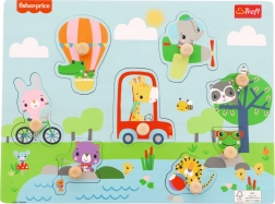 Een schattige houten inlegpuzzel met Fisher-Price-licentie brengt plezier en leren in één. 8 kleurrijke stukjes met houten knopjes liggen fijn in de hand; de basis met uitgefreesde vormen en zwart-witte hint helpt bij het plaatsen. Geweldig voor het ontwikkelen van de fijne motoriek, coördinatie en vormherkenning vanaf 18 maanden.