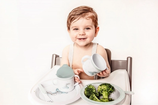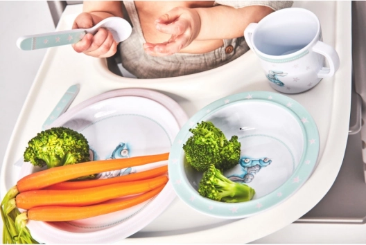 Antisliprubber op het bestek zorgt voor een stevige grip op de tafel, ideaal voor kleine kinderen die zelf willen eten.