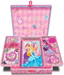 Ontdek een betoverende cadeauset in een decoratieve doos met Princess-motief. Twee zijvakjes klappen eenvoudig open en daaronder zit een dagboekje voor geheime wensen en belevenissen. Perfect voor het opbergen van kleinigheden én voor dagelijks schrijven.