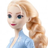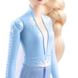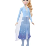 Elsa draagt haar karakteristieke blauwe outfit met cape en afneembaar rokje voor gemakkelijk omkleden en gevarieerd spel.
