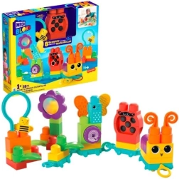 De set bevat 30 grote bouwstenen, waaronder enkele speciale onderdelen die zijn ontworpen om kinderen van 1 tot 3 jaar te stimuleren. Bevat acht sensorische functies ter ontwikkeling van tast-, zicht- en gehoorwaarneming. De blokken zijn compatibel met alle Mega Bloks-speelgoed, wat de speelmogelijkheden verder uitbreidt.