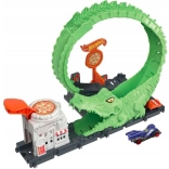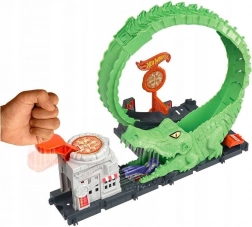 De Hot Wheels themaset met krokodillenlooping brengt actie en spanning – lanceer het autootje vanuit de pizzeria, schiet door de bek van de krokodil en beheers de verticale looping tot aan het doelwit. Kinderen beleven eindeloze creatieve verhalen en duels met het monster, wat verbeelding en vaardigheid stimuleert.