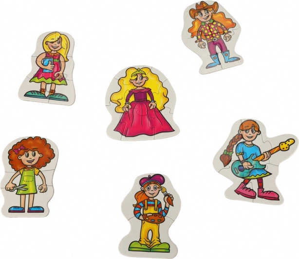 De set bevat in totaal 27 stukjes, verdeeld over 6 afbeeldingen met een meisjesachtig thema. Dankzij de dikte van 3 mm liggen de stukjes goed in kleine handjes en passen ze stevig in elkaar. Geweldig als cadeau en als activiteit om samen met ouders te doen.