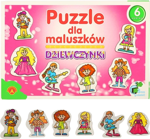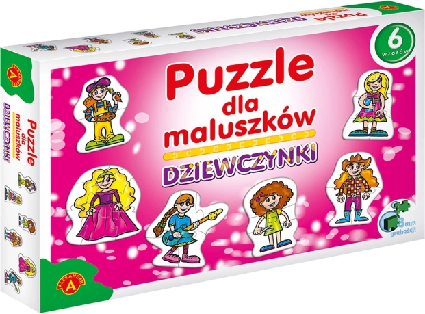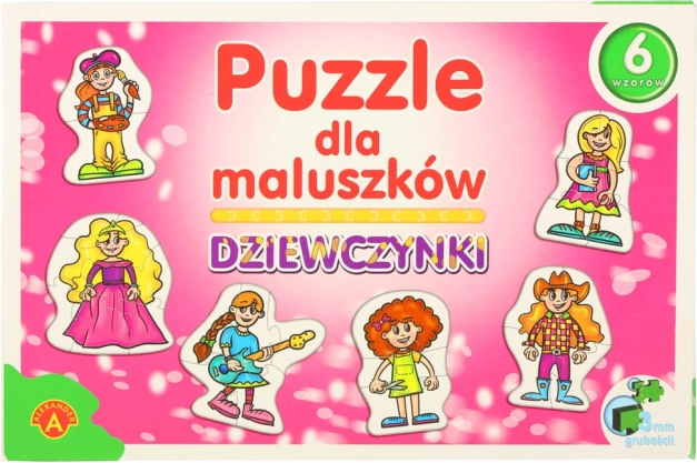 ALEXANDER puzzel voor de allerkleinsten – meisjes: 6 motieven, 27 stukjes, dikte 3 mm. Grote en kleurrijke stukjes voor kinderen vanaf 2 jaar. Ondersteunt motoriek en logisch denken.
