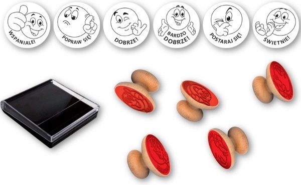 Deze motiverende stempels zijn een geweldige manier om een kind te belonen voor zijn of haar inspanningen en vooruitgang tijdens het leren. Dankzij zes houten stempels met verschillende beoordelingen kunt u eenvoudig waardering uiten in zowel de thuis- als schoolomgeving. De set bevat ook een inktkussen, dat onderdeel is van de verpakking.
