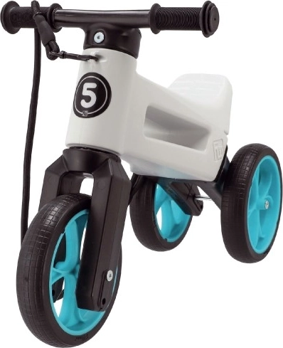 De speelse en veilige Funny Wheels Rider SuperSport groeit met je kind mee. Dankzij het 2-in-1 systeem verander je de stabiele driewieler eenvoudig in een tweewielige balansloopfiets – zo schakelt het kind soepel over naar balansoefening zonder angst of onnodige stress. Zachte, onderhoudsvrije banden zorgen voor stille ritten binnen en buiten en laten geen sporen achter.