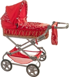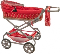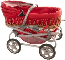 Elegante poppenwagen met een diepe rieten bak en een licht metalen frame voor eenvoudige besturing. Voorzien van een moderne bekleding, biedt stabiele ritten en is een perfecte aanvulling op elk rollenspel tijdens een wandeling. Afmetingen 90 × 40 × 70 cm, geschikt voor kinderen vanaf 3 jaar.