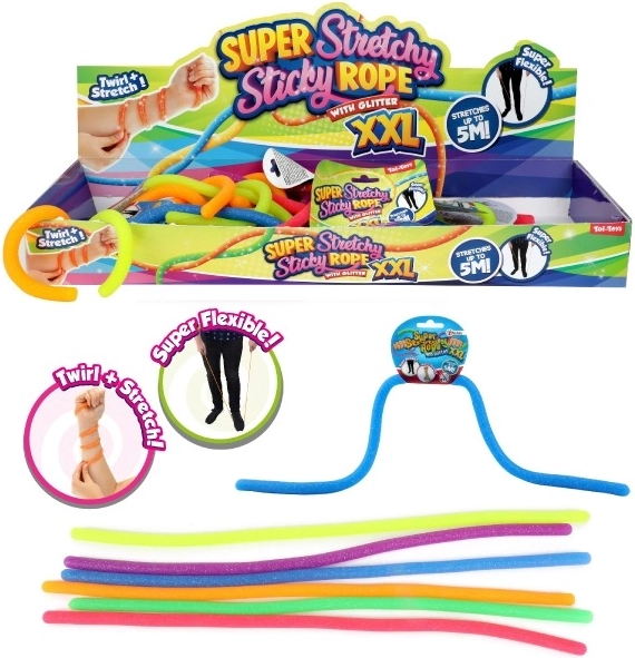 Onze Super Uitrekbare Klevende Rubbers XXL kunnen tot een lengte van 5 meter worden uitgerekt, wat vele speelse en creatieve mogelijkheden biedt.