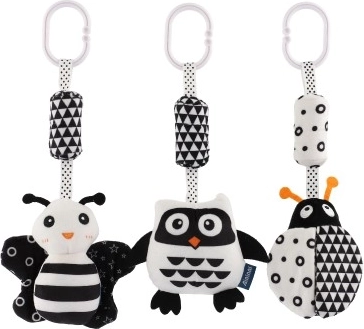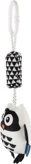 Dankzij de universele clip bevestig je het speeltje eenvoudig aan de kinderwagen, het ledikant of de luiertas. Kies uit 3 schattige varianten diertjes die elke baby zullen bekoren en wandelingen en rustmomenten veraangenamen.