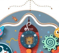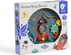 Houten activiteitenbord in de vorm van een raket van CLASSIC WORLD biedt 6-in-1 leuke activiteiten voor kinderen vanaf 12 maanden: doolhof, kralen, draaiwiel, knoppen, magnetisch element en draaiknoppen. Stimuleert de fijne motoriek, oog-handcoördinatie en creativiteit, is gemaakt van hoogwaardig hout en geverfd met niet-giftige verf.