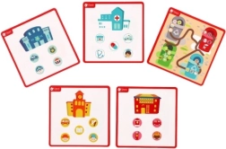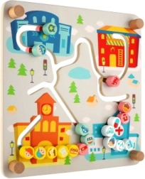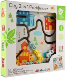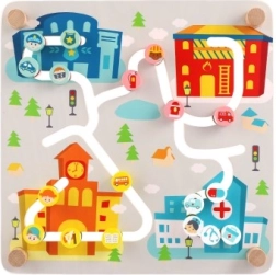 Deze hoogwaardige houten doolhof biedt twee educatieve scènes in één. Aan de stadszijde leiden kinderen voertuigen en figuurtjes over gefreesde routes naar het ziekenhuis, de brandweer of de politie, waarbij ze ruimtelijke oriëntatie, planning en geduld oefenen. Kleurrijke illustraties en duidelijk gemarkeerde paden stimuleren zelfstandig spel en samenwerking met ouders.