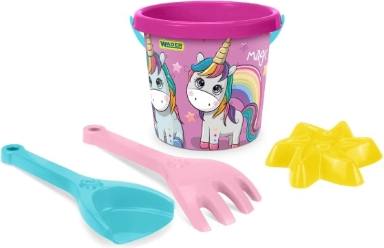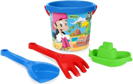 Op naar de zandbak! Deze kwalitatieve zandset van Wader biedt kinderen vanaf 12 maanden eindeloos speelplezier. In de verpakking vind je een emmer, schep, harkje en zandvormpje – allemaal van duurzaam plastic, ideaal voor op het strand en in de zandbak. Kleurrijke piraten- of eenhoornmotieven stimuleren creativiteit en de ontwikkeling van de fijne motoriek.