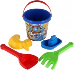 Een kinderset voor in het zand met PAW Patrol-motief zorgt voor volop speelplezier in de zandbak, op het strand en in de tuin. Bevat een emmer ca. 12 cm, een schep, een hark en 2 vormpjes. Licht en stevig plastic, verpakt in een net voor gemakkelijk dragen.