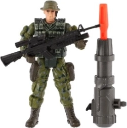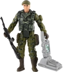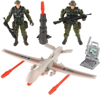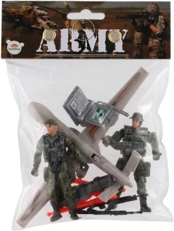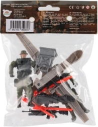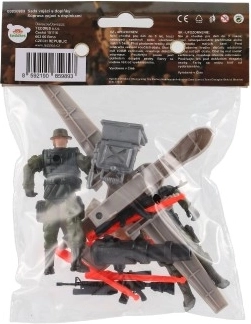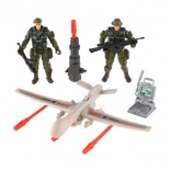 De set bevat twee gedetailleerde soldaten in groen camouflageschrift en een vliegtuig, ideaal voor het realistisch naspelen van veldslagen.