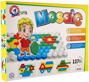 Duik in de wereld van kleuren en vormen met deze mozaïek-bouwset. De basis is een witte plaat die doet denken aan een honingraat, waarop gekleurde kunststof stukjes kunnen worden geplaatst. De mozaïek bevordert creativiteit, ruimtelijke vaardigheden en de ontwikkeling van fijne motoriek bij kinderen.