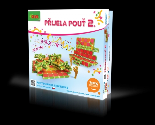 Ontdek de creatieve wereld met de bouwset SEVA De kermis is gearriveerd 2 met 693 onderdelen in nieuwe, vrolijke kleuren. Bouw een draaimolen, schommel en andere kermisattracties die de fantasie, fijne motoriek en creativiteit van kinderen stimuleren. Ideaal speelplezier voor jonge bouwers vanaf 4 jaar.