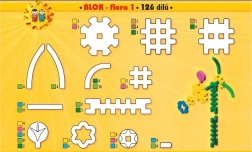 Creatieve bouwset Blok Flora 1 met 126 onderdelen waarmee kinderen verschillende soorten bloemen kunnen bouwen en hun fantasie, fijne motoriek en creativiteit kunnen ontwikkelen. Ideaal cadeau voor kleine makers vanaf 3 jaar.