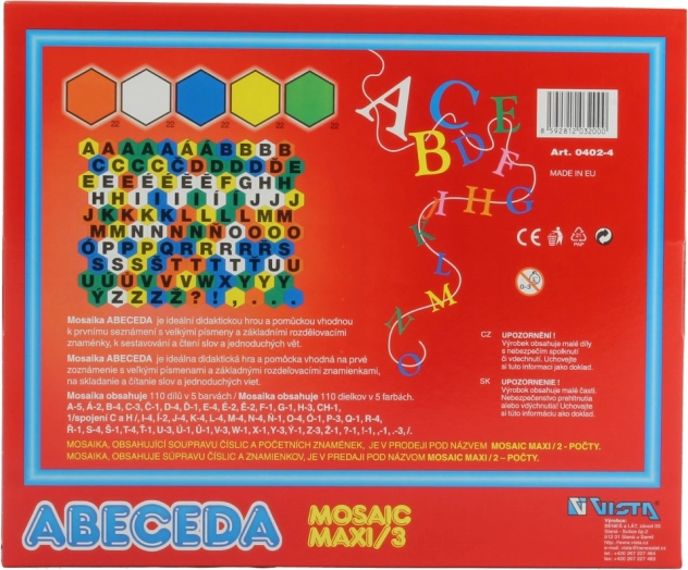 Ontdek een speelse weg naar het alfabet. Met de mozaïek De bij leert letters leggen kinderen eenvoudig letters en eerste woordjes, oefenen ze kleuren en trainen ze logisch denken. 110 kleurrijke stukjes (geel, rood, groen, blauw, wit) motiveren tot creëren en leren zonder verveling.