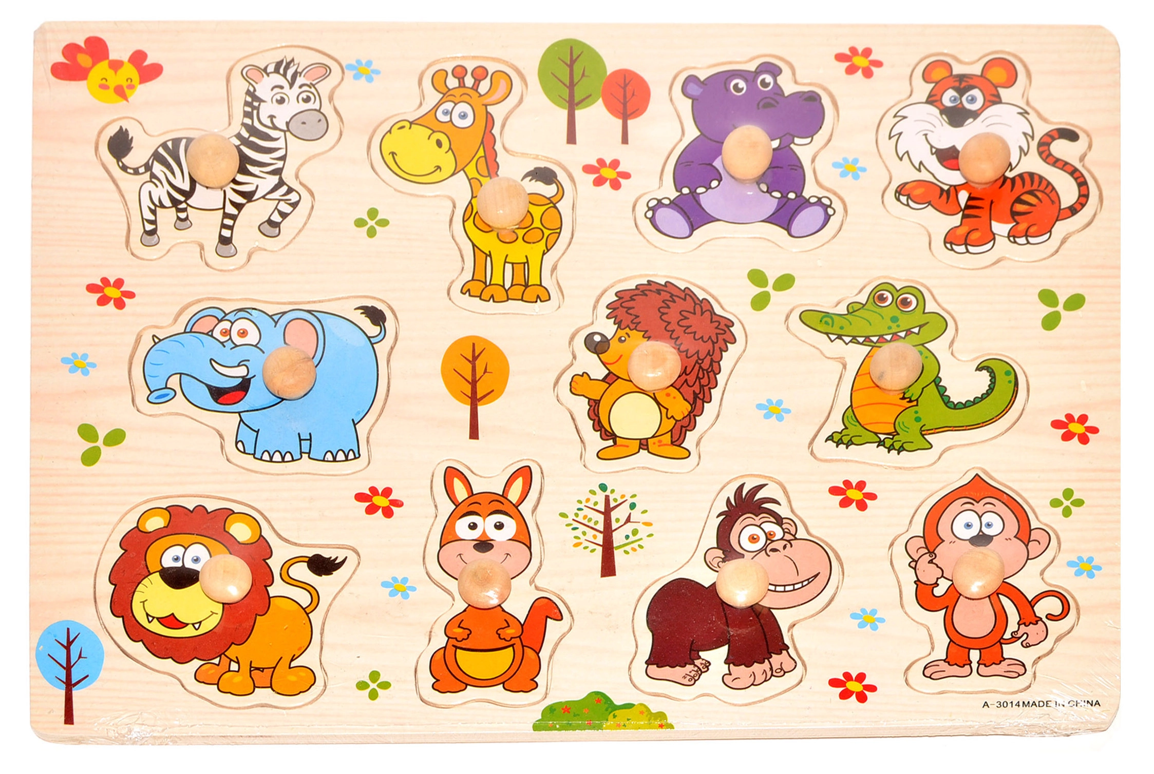 Ontdek de leuke en leerzame houten inlegpuzzel met dieren met afmetingen van 22 × 30 cm, die fijne motoriek, logisch denken en herkenning van vormen bij kinderen stimuleert.