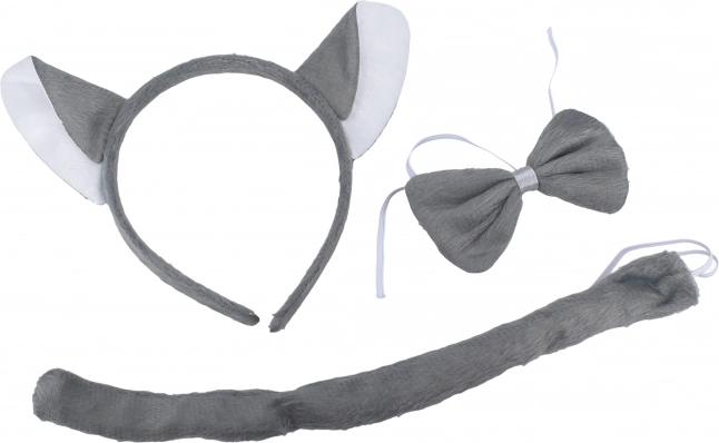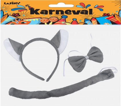 - Inhoud van de set: haarband met wolvenoortjes, strikje om de nek, staart
