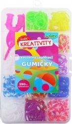 Maak je eigen originele armbanden met deze complete set elastiekjes! In de verpakking vind je 390 gekleurde elastiekjes, haaknaalden, sluitingen en een weefrek in een handig doosje. Geweldige creatieve fun voor kinderen en volwassenen, en een accessoire dat je met elke outfit kunt combineren.