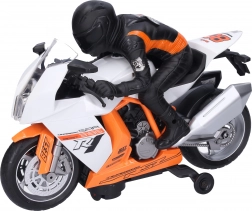 Geniet van een actievolle rit met een stijlvolle race motor van 28 cm met een rijdersfiguur. Biedt licht- en geluidseffecten, een realistisch design en twee kleurvarianten – oranje en wit. Perfect voor kleine racers en motorliefhebbers.