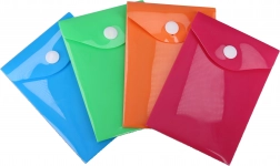 Praktische map met drukknoop van 11,5 × 8 cm houdt kleine documenten en school- of kantoorspullen overzichtelijk bij elkaar. Gemaakt van zacht plastic, makkelijk afwasbaar en dankzij de sluiting met drukknoop wordt de inhoud goed beschermd tegen uitvallen en vuil.