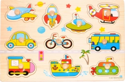 Houten Inlegpuzzel Vervoer is het ideale speelgoed voor de ontwikkeling van de motoriek en het logisch denken van uw kinderen. Perfecte keuze voor kinderen die van auto's en vervoersmiddelen houden.